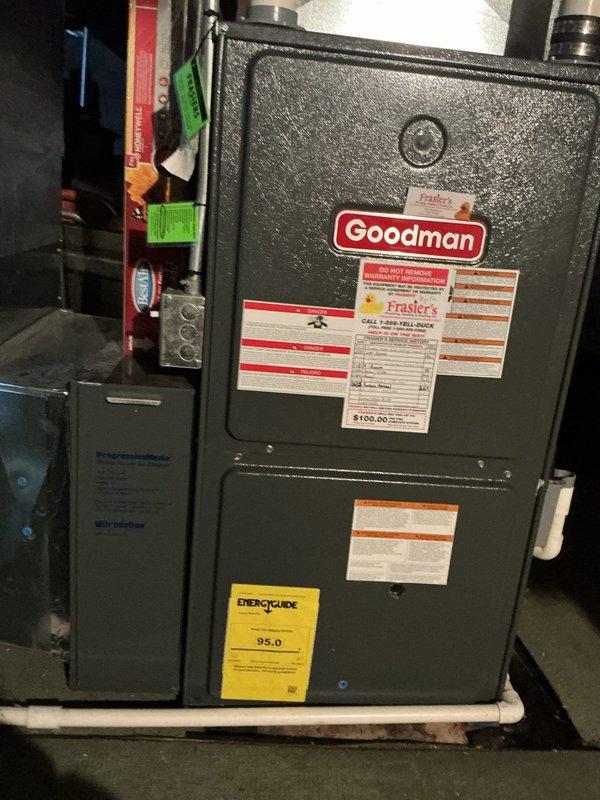 Completed annual heating system maintenance on customer's Goodman 95% efficiency furnace per Partner Plan agreement. Performed comprehensive furnace inspection and preventative maintenance service. Unit is operating within manufacturer specifications with no issues detected.
