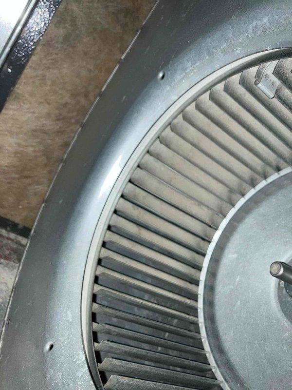 Performed annual prepaid maintenance service on furnace. Inspected blower wheel assembly which was found in good working condition with no visible deterioration. System functioning properly with no issues identified requiring further attention.