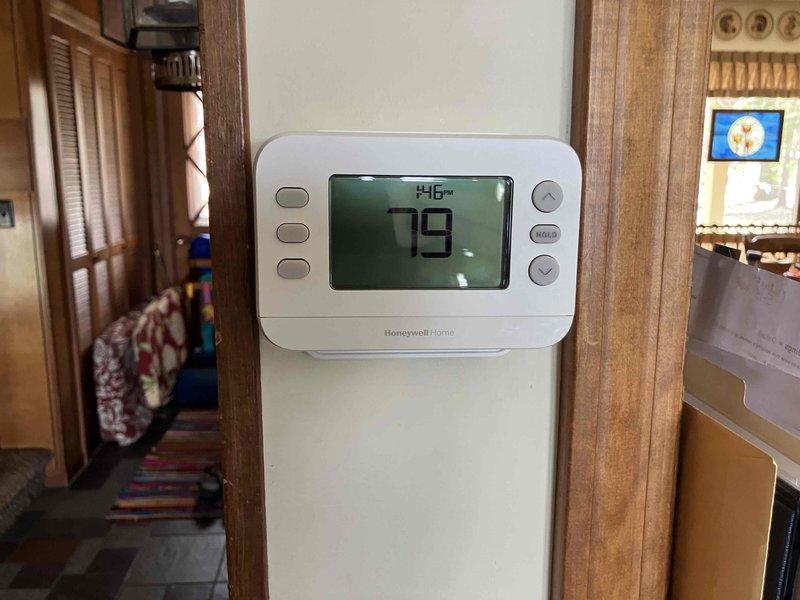 Responded to service call for malfunctioning living room thermostat with intermittent blank screen and low battery warnings that persisted after battery replacement. Removed failed thermostat unit and installed new Honeywell Home digital thermostat, verifying proper operation and display functionality upon completion.