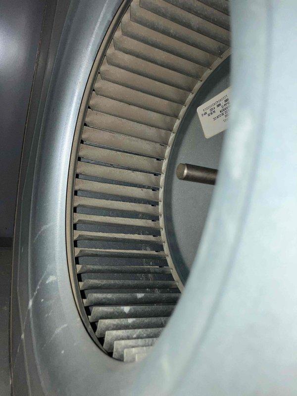 Performed annual preventative maintenance on 13+ year old furnace. Inspected system components including blower wheel which showed dust accumulation on the fan blades. Noted small amount of rust on burners and presented replacement options to customer.